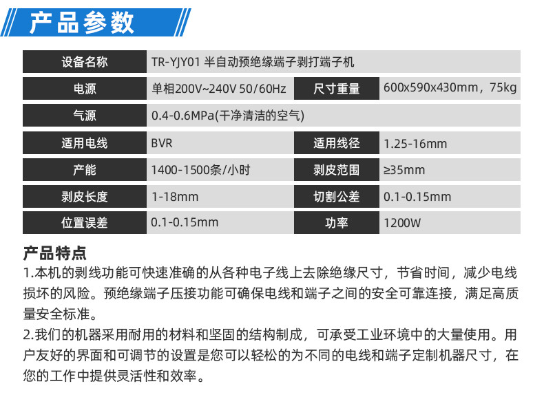 TR-YJY01 半自动预绝缘端子剥打端子机