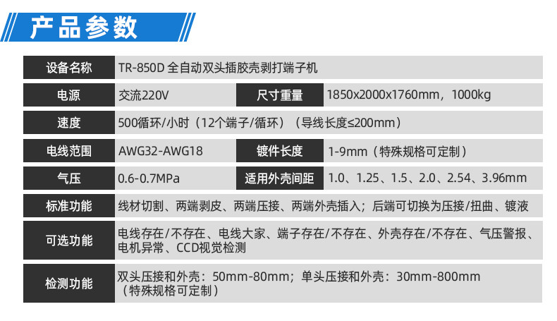 设备功能 | 全自动双头插胶壳剥打端子机 |
