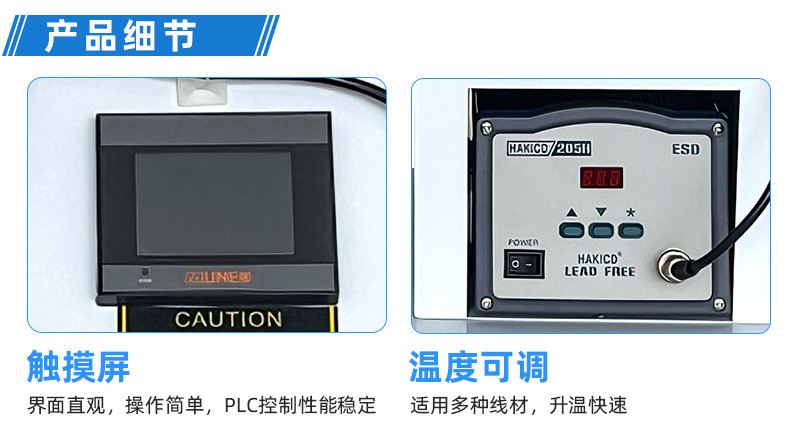 3.适用多种线材,出锡准确、自动回锡、升温快速;