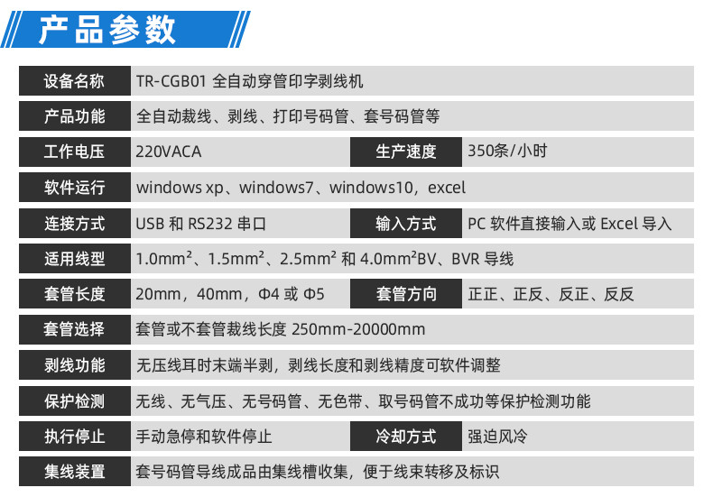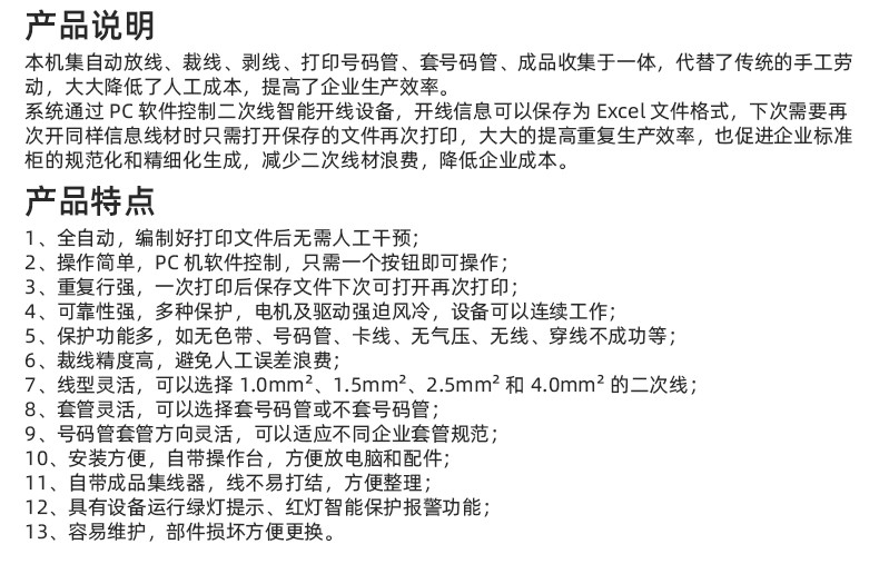 产品功能:全自动裁线、剥线、打印号码管、套号码管等