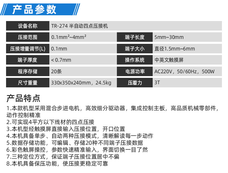 TR-274 半自动四点压接机